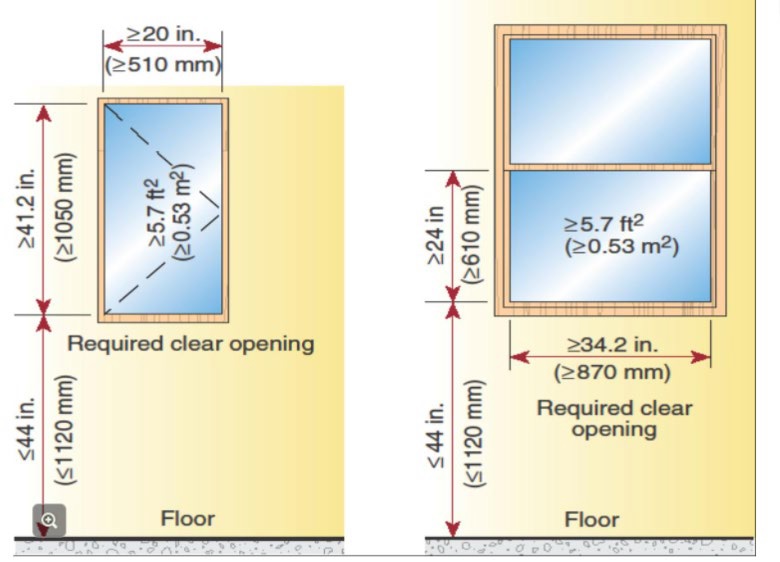 NOTE: Minimum window requirement of 20” x 24” = 3.33 sq. ft.